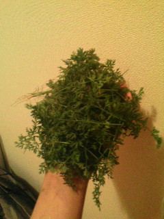 今日は人参の葉を刈り上げできましたわ