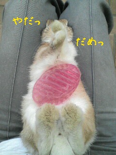 無抵抗にさせてお腹周りまで丹念にブラッシング。