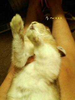 軽くなでる程度、おなかをなでました。
