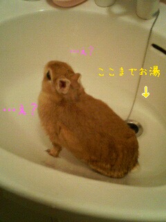 きびしゃんはお湯に浸かると動きが止まっちゃうのですよ。