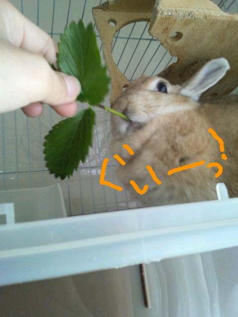 見てないうちに苺の葉をあげましょう。