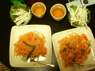 ☆いんげんとシーフードのトマトパスタ