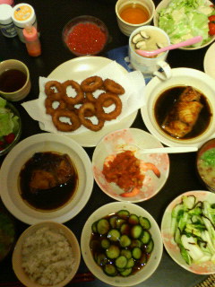 後ろにあるのは買った葱とみずな。