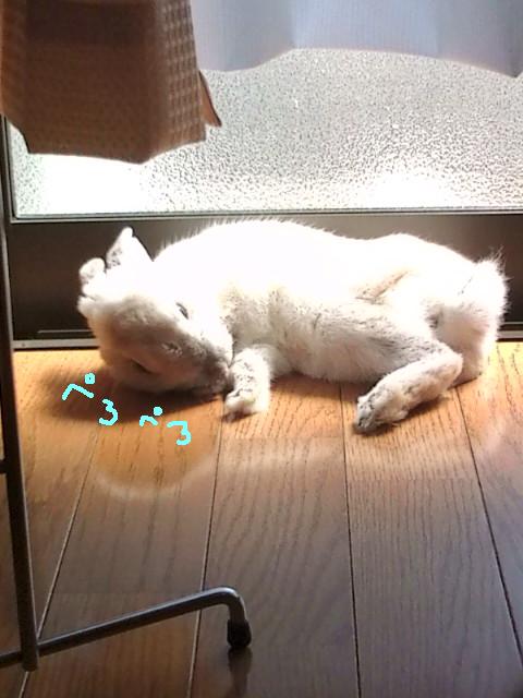 あいかわらずストーブの前でぺろろろ。