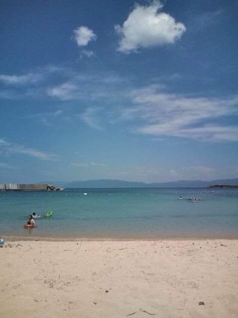 浅瀬で魚が見えるくらいきれいな海でした。