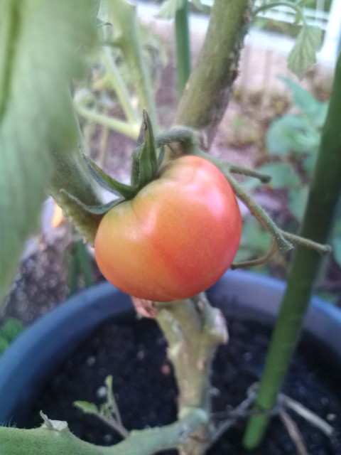 第一子収穫できそうな桃太郎さん。