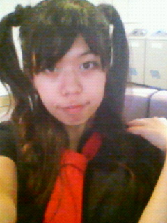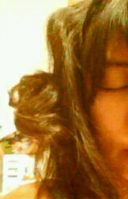んで今日は二つにくくった根元に髪の毛巻きつけていたので、